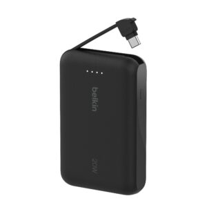 BelkinBatterie externe 10K 20W avec câble USB-C intégré, noir