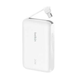 BelkinBatterie externe 10K 20W avec câble USB-C intégré blanc