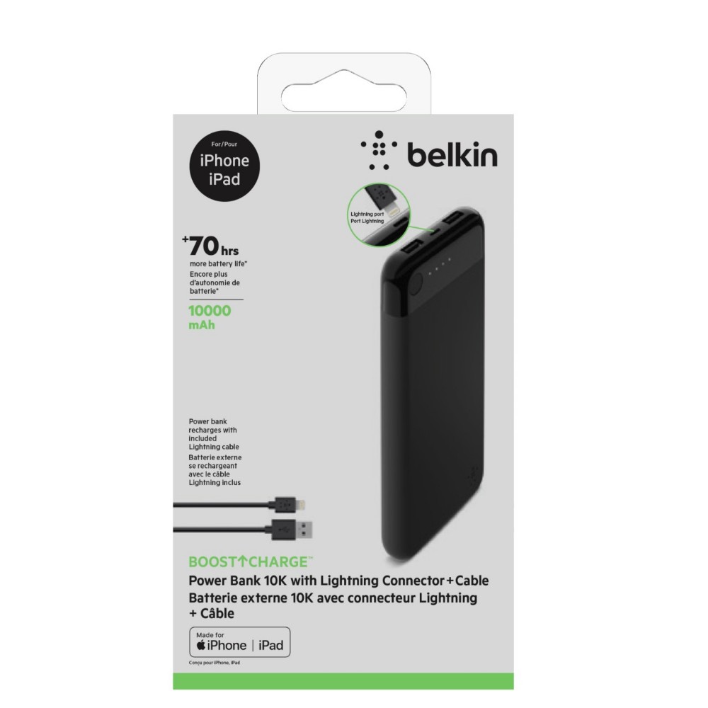 • BoostCharge Powerbank 10K avec connecteur lightning + Câble Noire