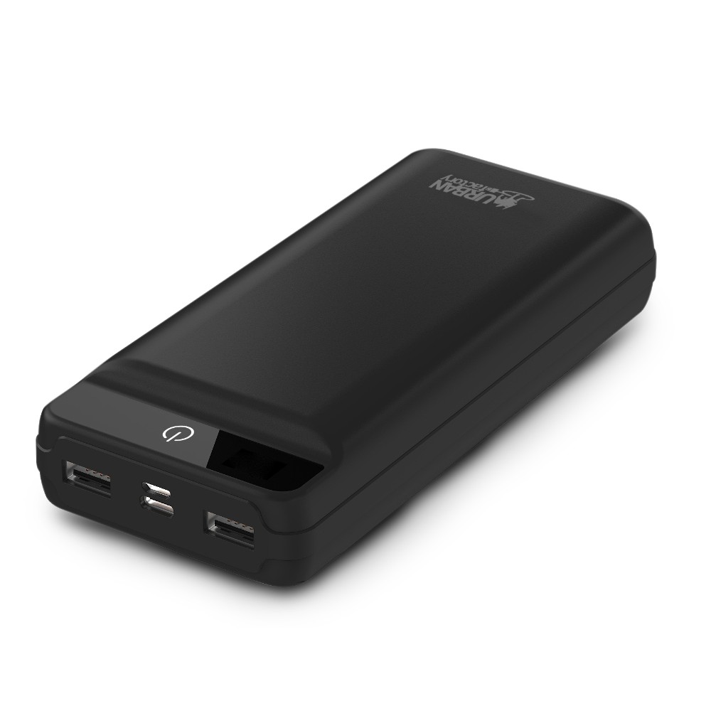 Capacité de la batterie de 30 000mAh. 2 sorties USB-A de 2.4A chacune. 1 entrée USB-C de 2A et 1 entrée Micro-USB de 2A. 1 câble Micro-USB fourni. Indicateur de charge lumineux. Matériau: ABS Noir.