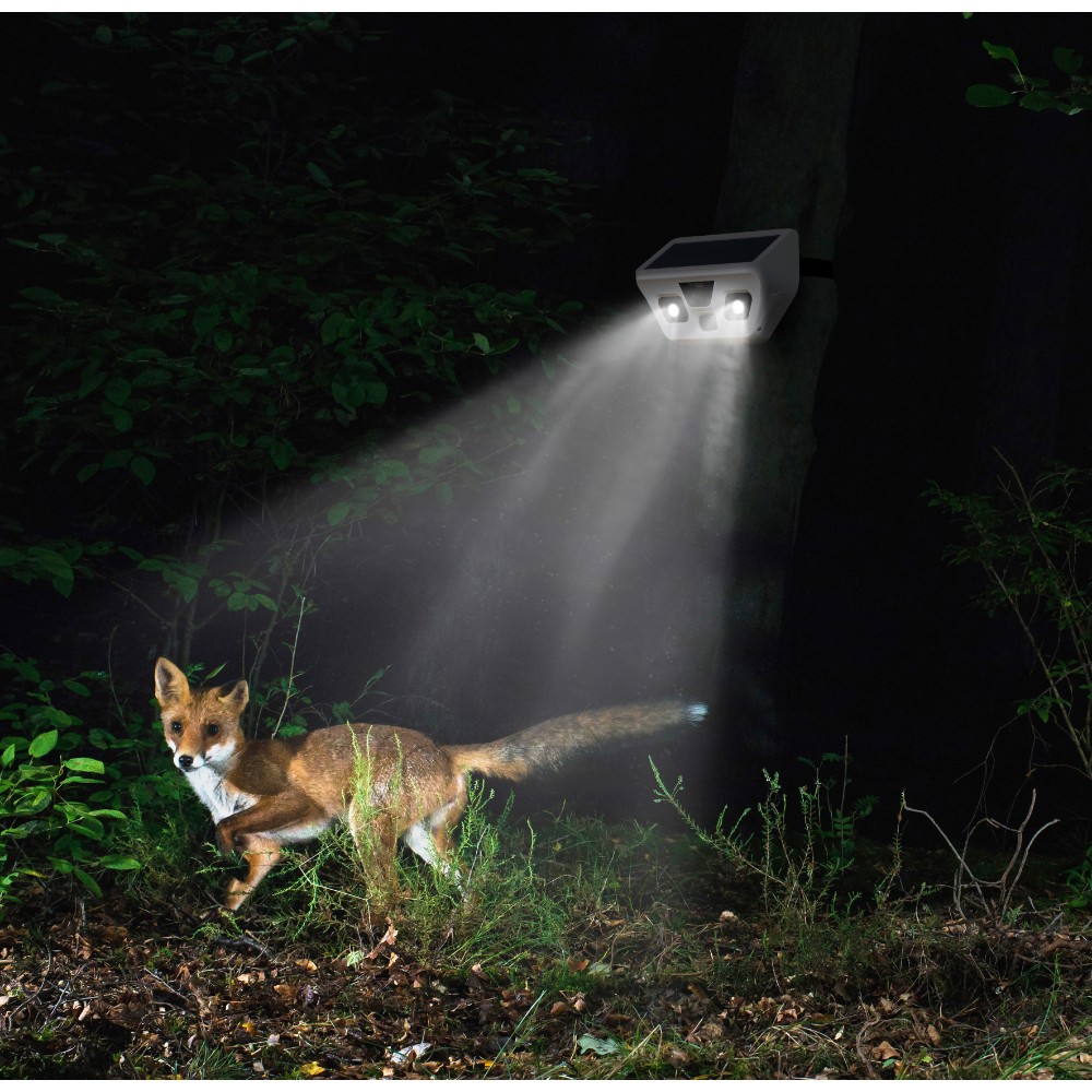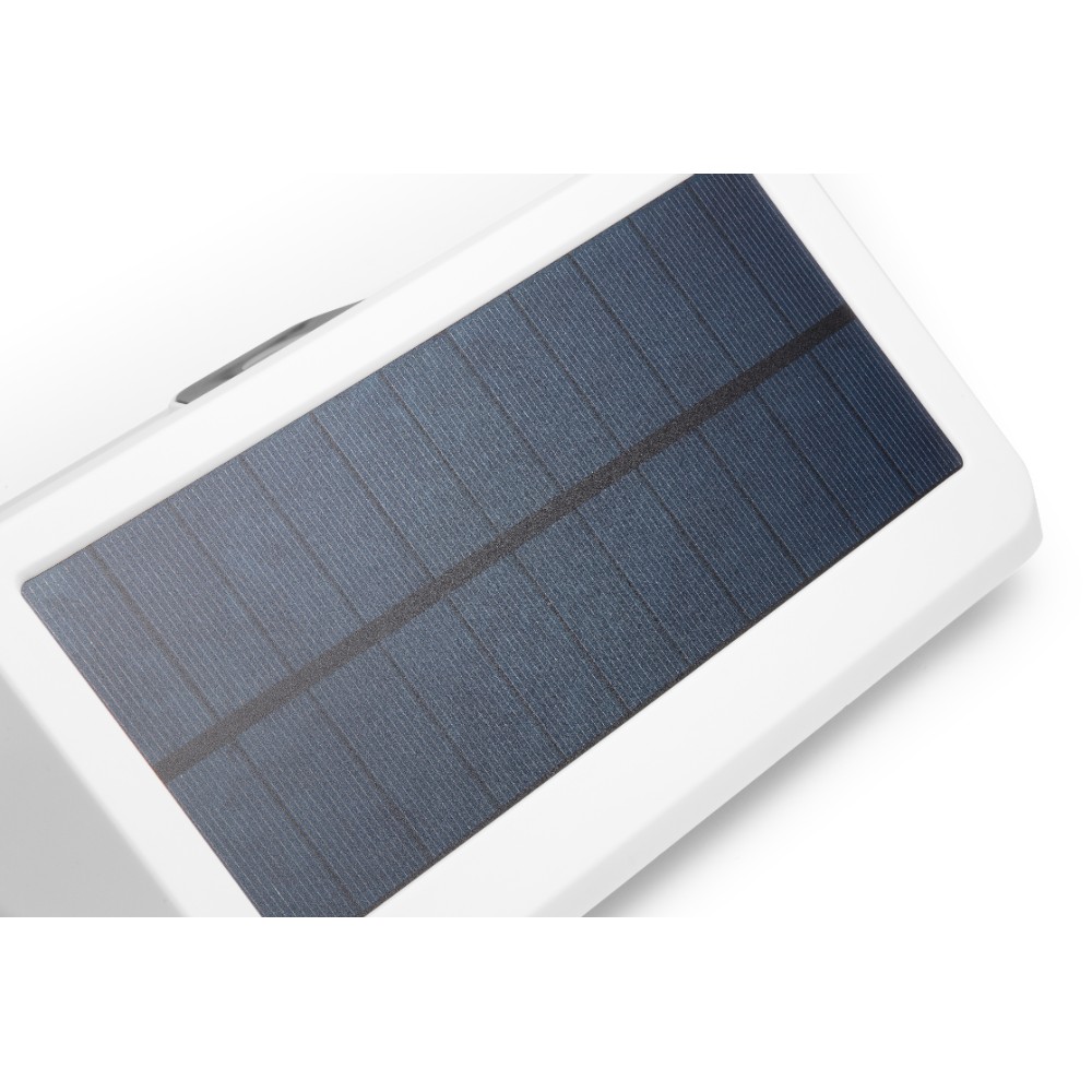 Caméra d’extérieur solaire FullHD avec éclairage LED. Multifonction: enregistrement de la vidéo avec son, photographie et éclairage. Batterie rechargeable de 8000mAh (jusque 2 semaines d’enregistrement) La lumière solaire constante prolonge considérablement la durée de vie de la batterie.