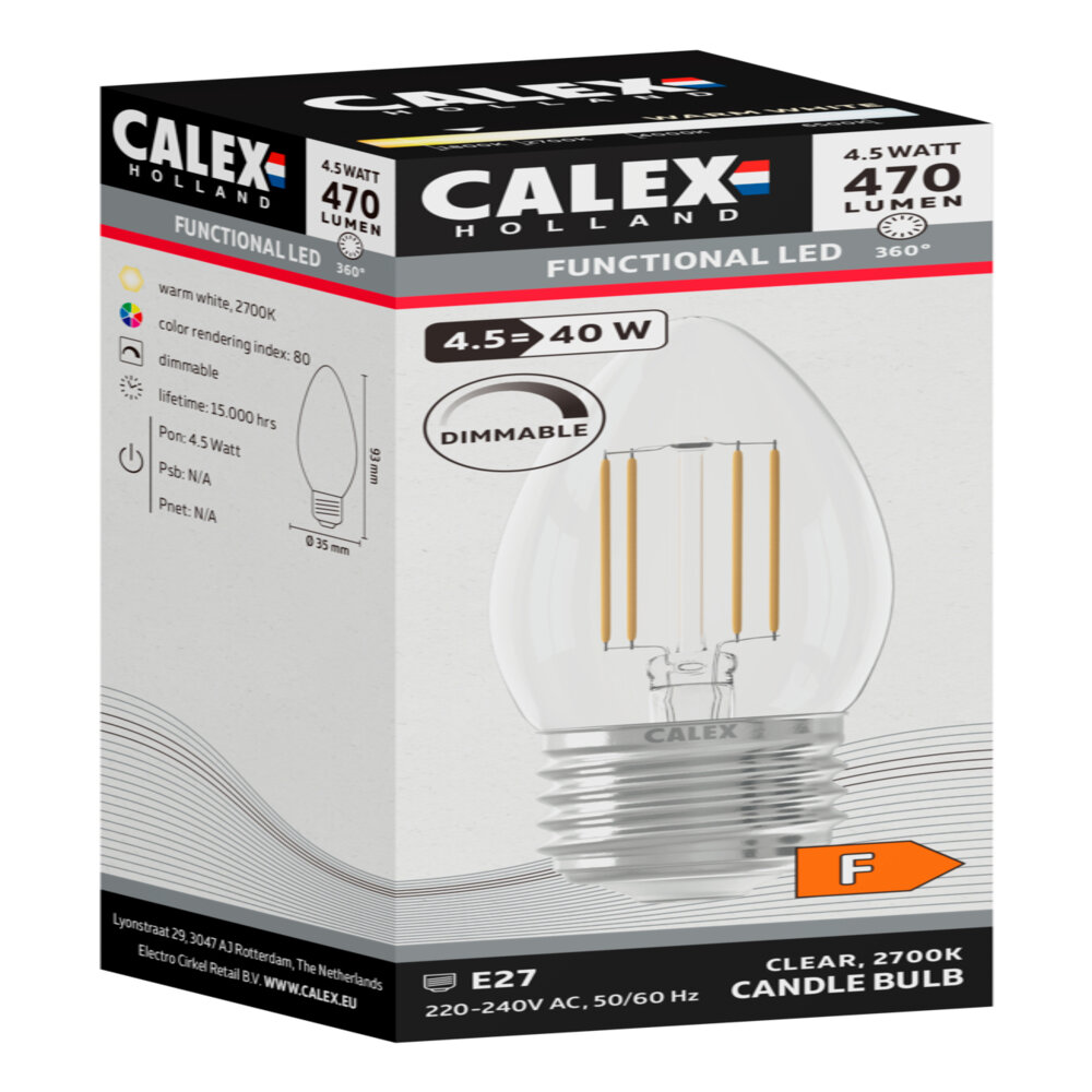 Candle Clear Straight filam’ 220-240V 4.5W E27 LED dimmer