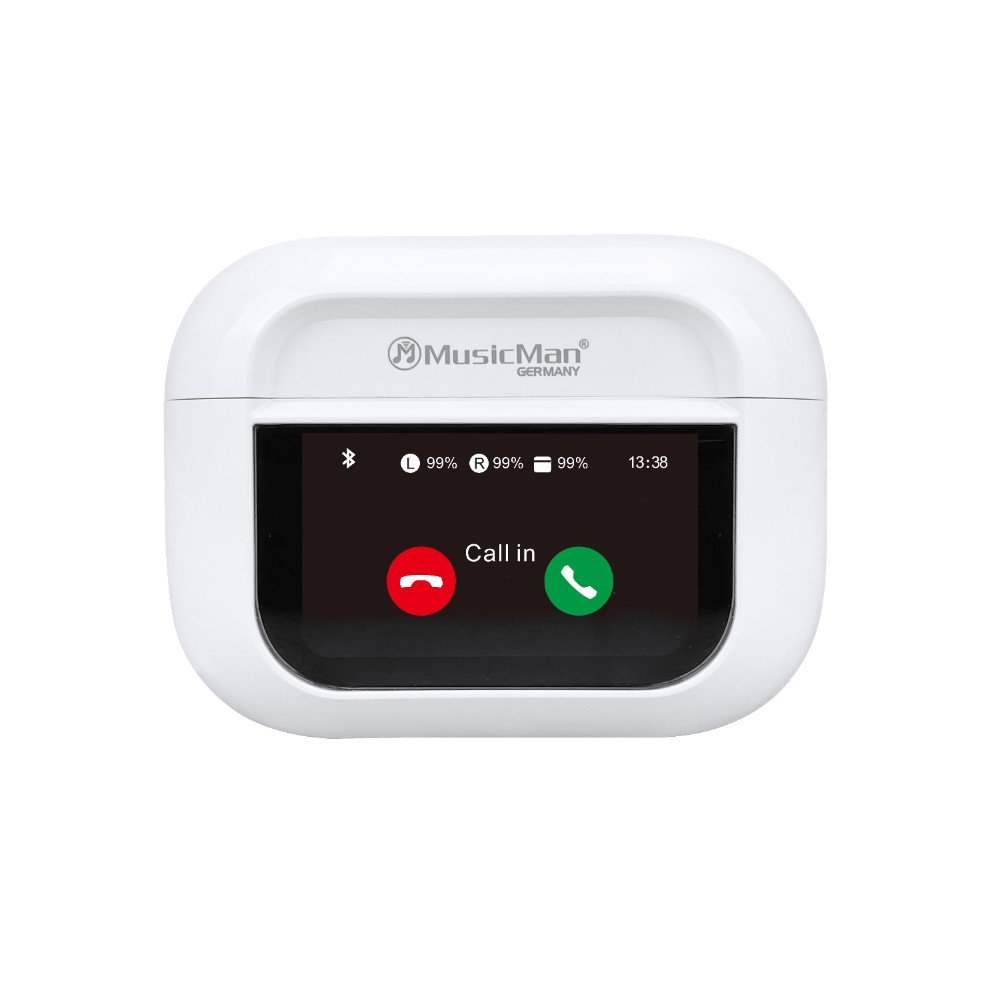 Ecouteurs intra-auriculaires True Wireless Stereo (TWS) avec suppression active du bruit (ANC). Ecran tactile multifonctionnel sur le boîtier de recharge. Bluetooth V5.3. Microphone intégré pour les appels téléphoniques. Boîtier de recharge pour jusqu’à 4 charges. Fonction marche/arrêt automatique