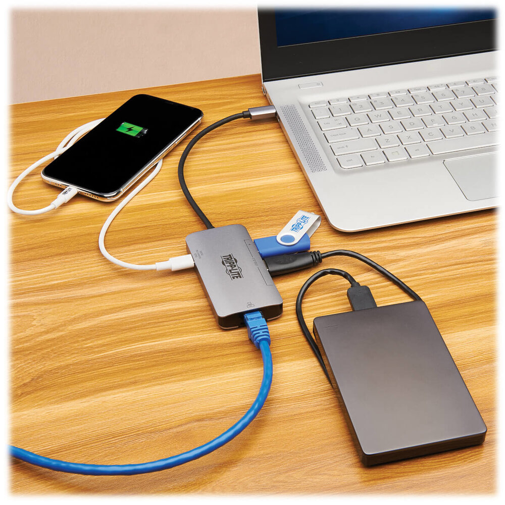 HUB USB-C à 3 ports – USB 3.2 Gen 1, 3 ports USB-A, GbE, Thunderbolt 3, chargement PD 100 W, boîtier en aluminium