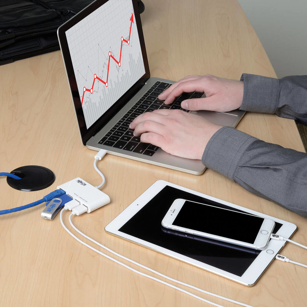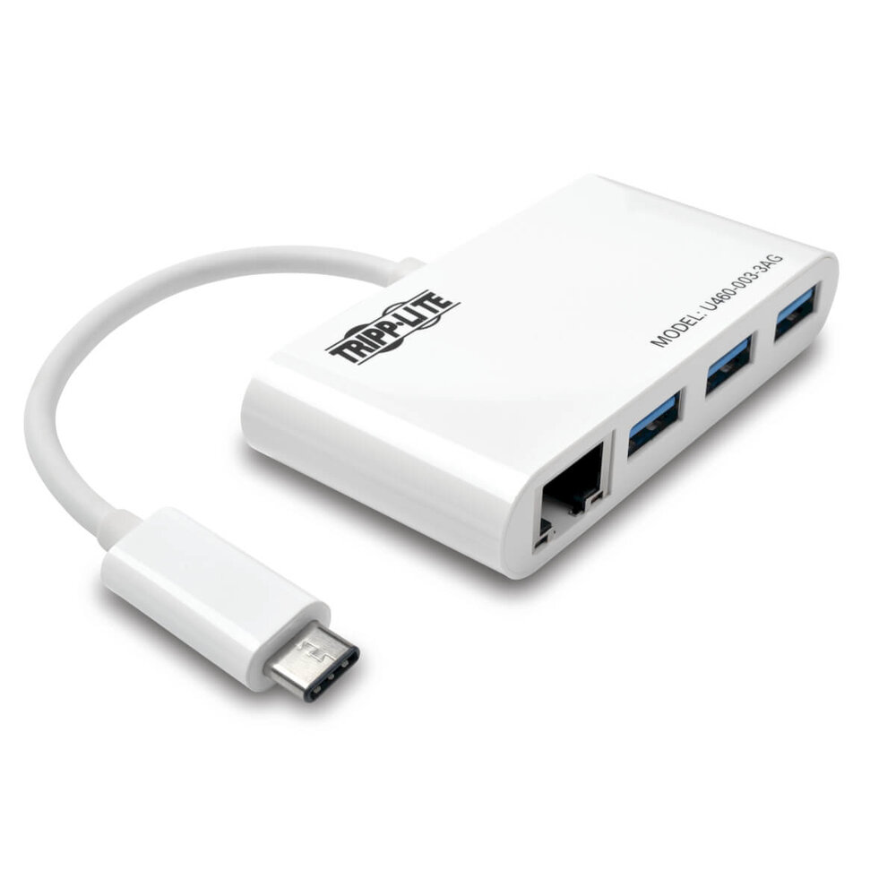 HUB USB-C 3 ports avec port LAN, USB-C vers 3 ports USB-A, Gbe, USB 3.0, blanc
