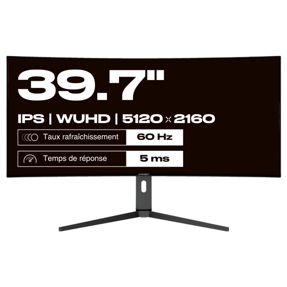 MONITEUR BUREAUTIQUE JAPANNEXT JN-5X40 : 39,7″ / Dalle IPS / 5K2K (5120×2160) / 60Hz / 5 ms / 1,07 milliard de couleurs / 1 DP 1.4 / 1 HDMI 2.0 / KVM / USB C avec Charge jusqu’à 65W