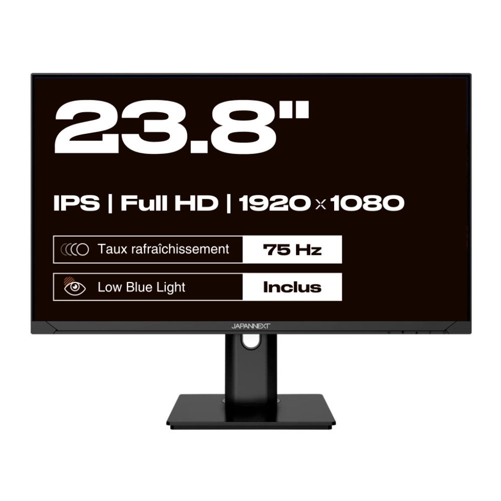 MONITEUR BUREAUTIQUE JAPANNEXT JN-IPS2382FHDR-HSP 23,8″ / Dalle IPS / FHD (1920×1080) / 60Hz / 5 ms / 16,7 millions de couleurs / Réglable en hauteur / Position paysage ou portrait /Pivot +/- 30° Horizontal