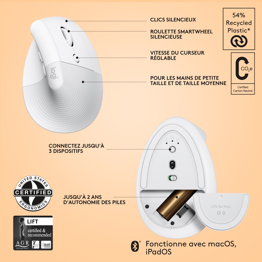 LIFT Vertical Ergo White/Pale Souris Ergonomique pour Mac