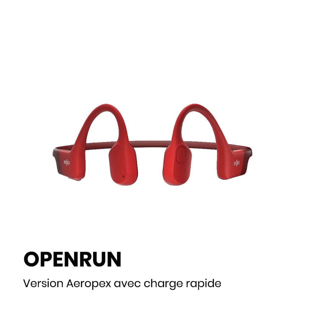 OpenRun (version à charge rapide de l’Aeropex) : Aeropex est le modèle le plus vendu de Shokz. Ils ont maintenant été mis à jour avec une fonction de charge rapide et ont été renommés OpenRun. En 10 minutes de recharge rapide, vous disposez de 1,5 heure d’autonomie d’écoute, ce qui vous permet de reprendre la route rapidement.Charge rapide+Etanchéité IP67(Pas pour la natation+)8 heures d’autonomie+26g (Léger + Confortable)