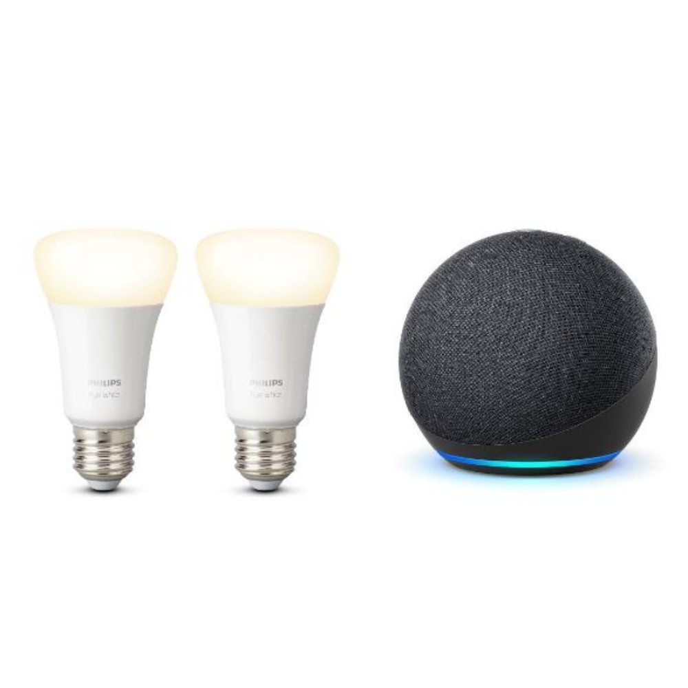 Pack de 2 Ampoules Philips E27 Hue White + Amazon Echo Dot (4ème Génération)