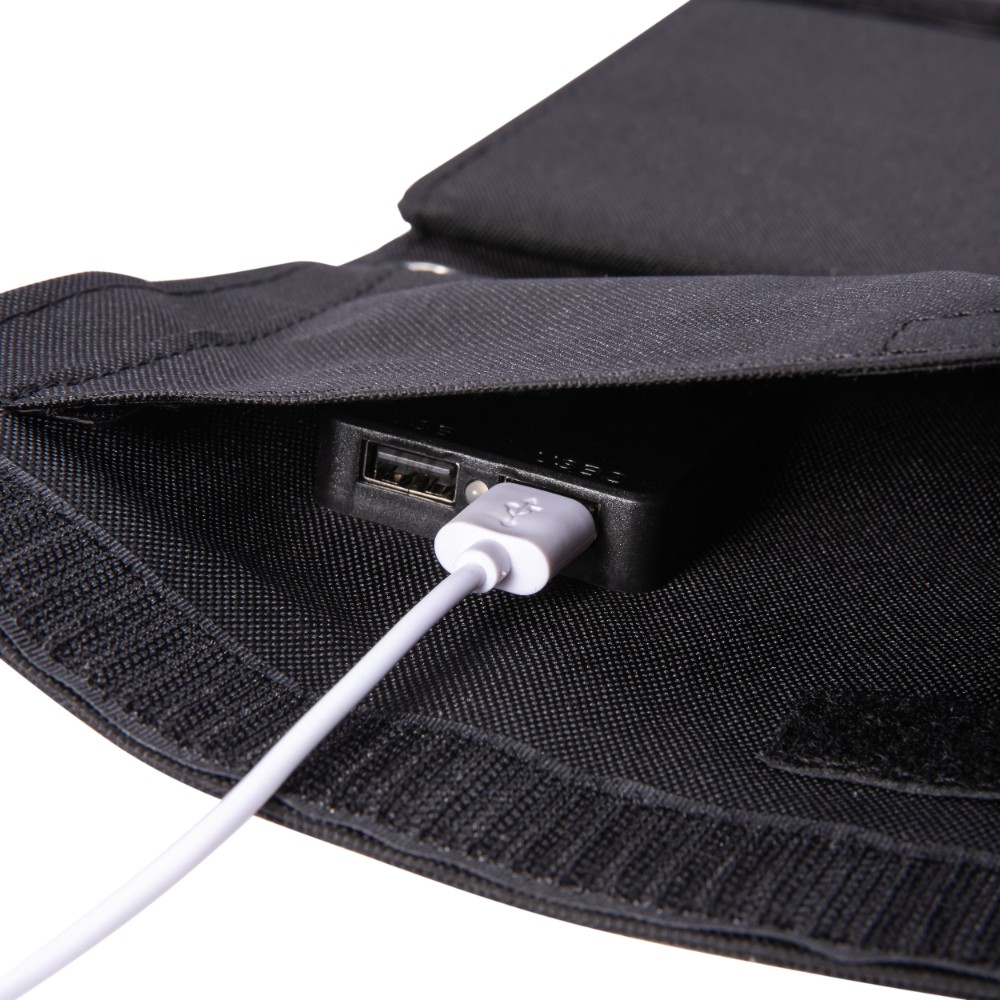 • Panneau solaire étanche pliable compacte, idéal pour le voyage, le camping et l’utilisation en plein air + • 2 ports USB dans un coret pour charger facilement les power bank et les smartphones + • Housse en tissu PET