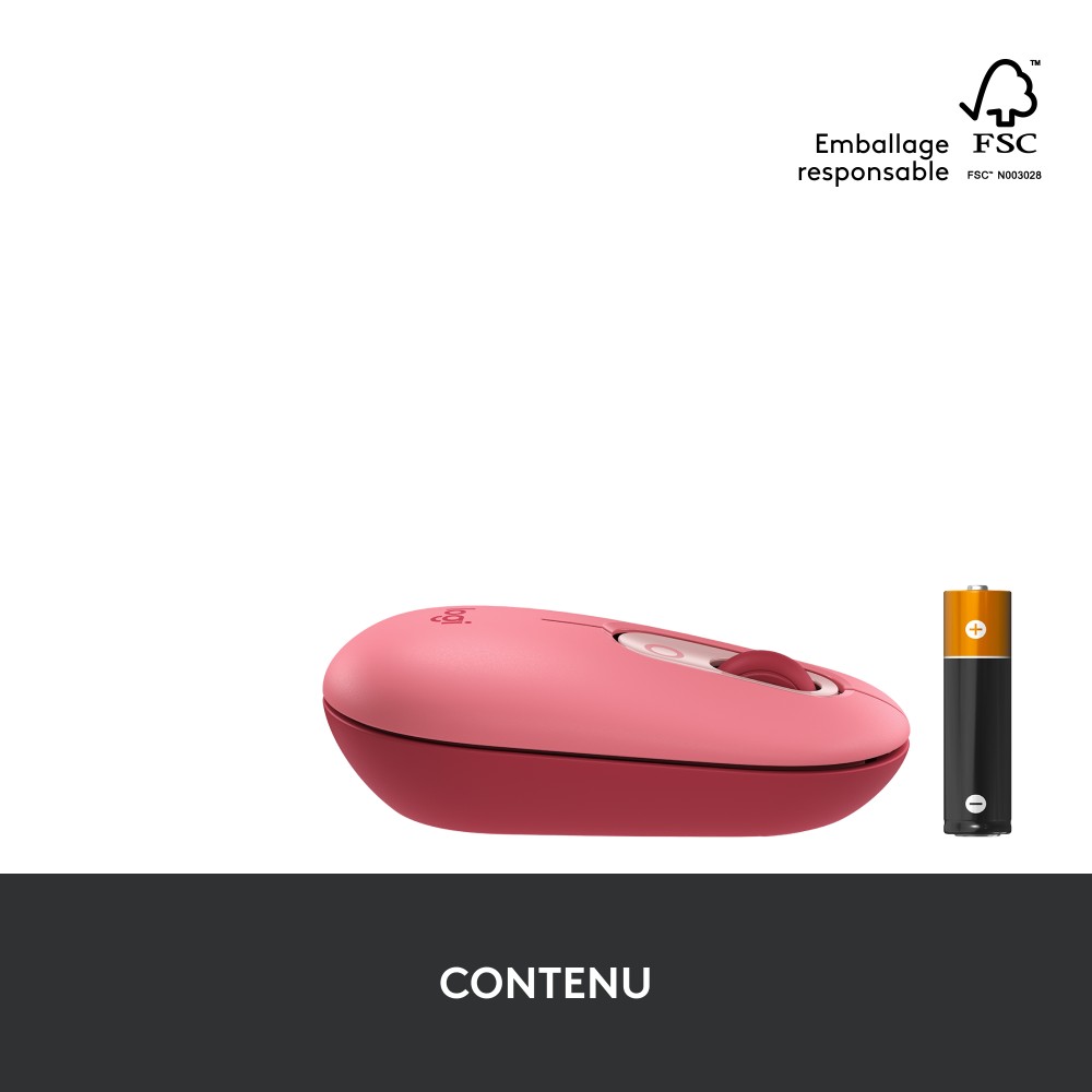 - La POP Mouse n’est pas seulement agréable à regarder. Elle est aussi agréable à utiliser, grâce à un contour qui s’adapte parfaitement à la paume de votre main. Mieux, vous pouvez l’utiliser partout. La technologie SilentTouch1Réduction du bruit des clics gauche et droit de plus de 90% par rapport à la souris Logitech M170. Niveau de dBA du clic gauche mesuré par un laboratoire indépendant à 1 m. rend chaque clic silencieux et le suivi de haute précision vous permet de travailler sur des surfaces plus petites. Glissez votre POP Mouse dans votre sac à main ou la sacoche de votre ordinateur, et exprimez-vous en toute liberté. La roulette SmartWheel lit dans vos pensées et passe du mode de défilement haute précision au mode de défilement rapide, ce qui vous permet de parcourir de longues pages en un tour de roulette.