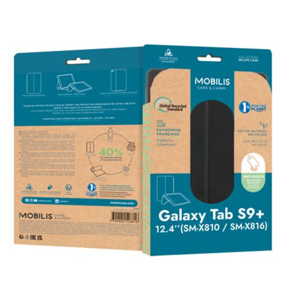 RE.LIFE Case for Galaxy Tab S9+ 12.4” (SM-X810 / SM-X816) – Black – 40% RECYCLED