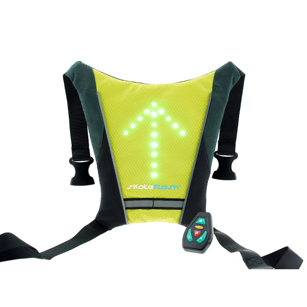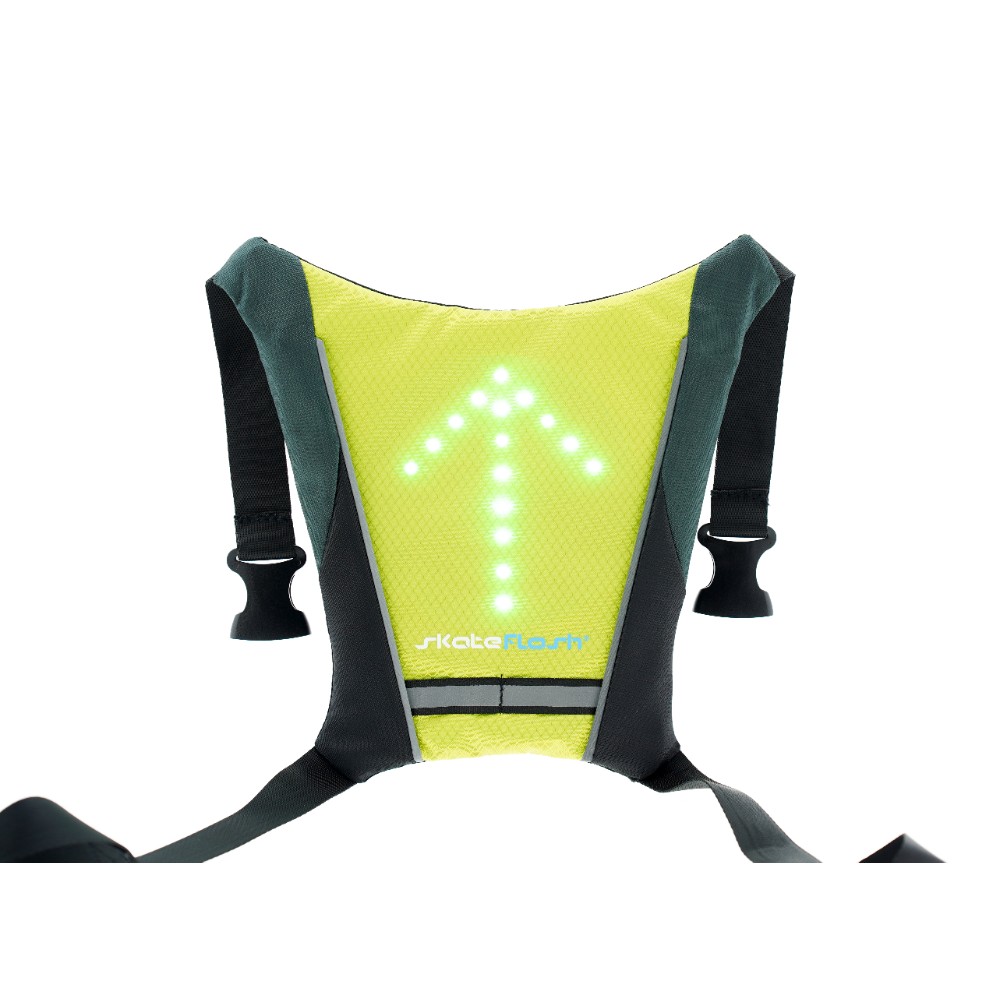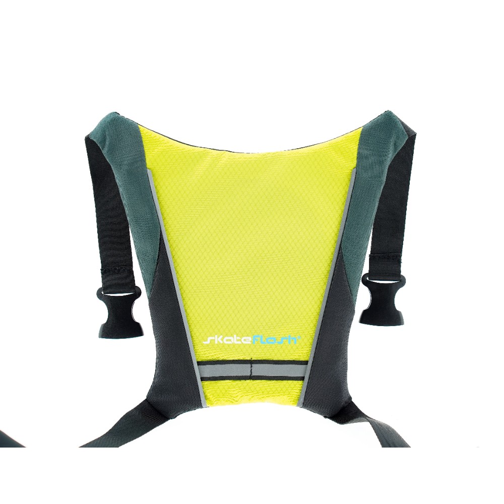 • La veste réfléchissante Skateflash accroît votre sécurité en maintenant la visibilité dans des conditions de faible luminosité grâce à son panneau LED de 10 x 10 cm et à sa batterie intégrée de 800 mAh.