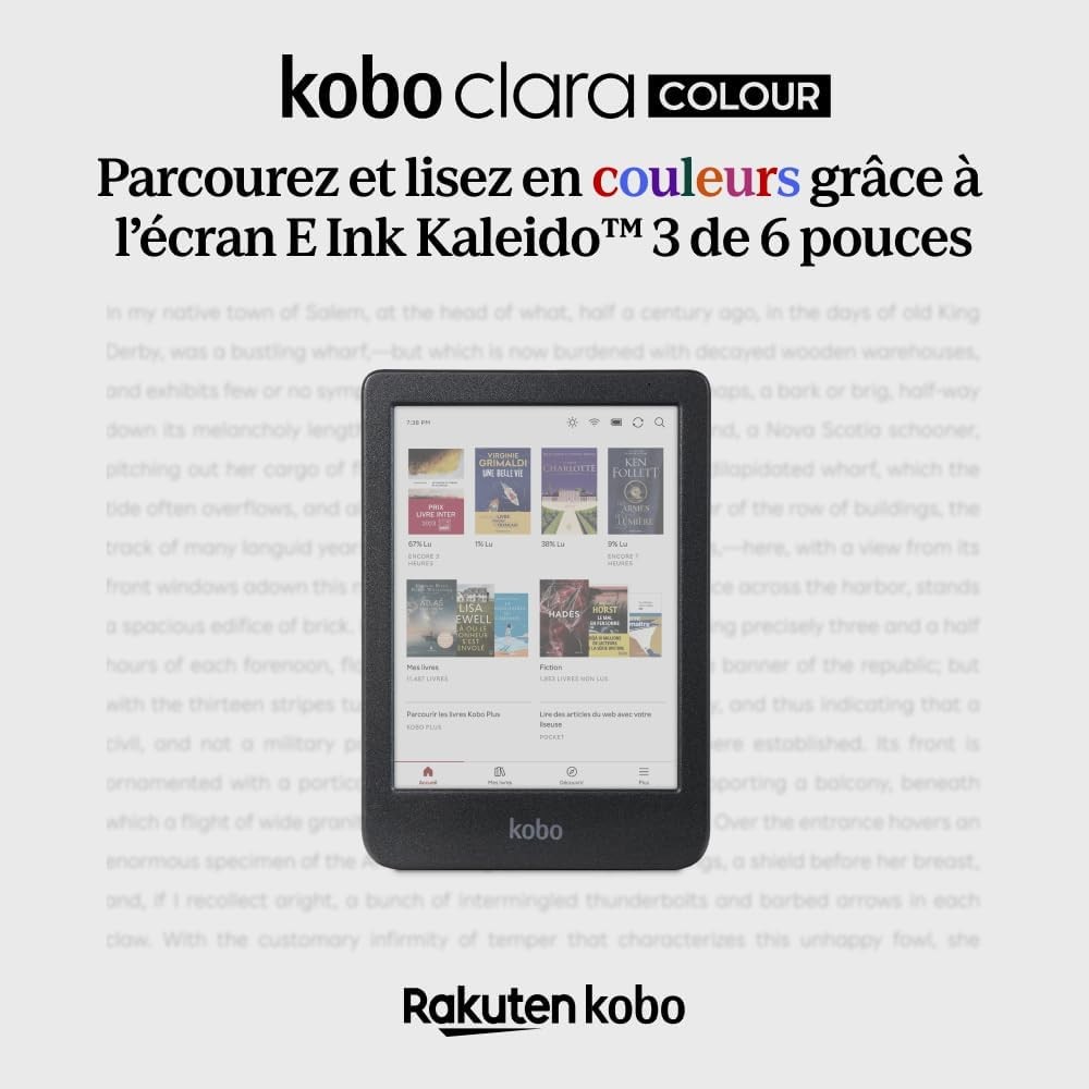 • “Kobo Clara Colour – coloris Noir Ecran 6″” E Ink KaleidoTM 3 Couleur, ComfortLight PRO, Waterproof”