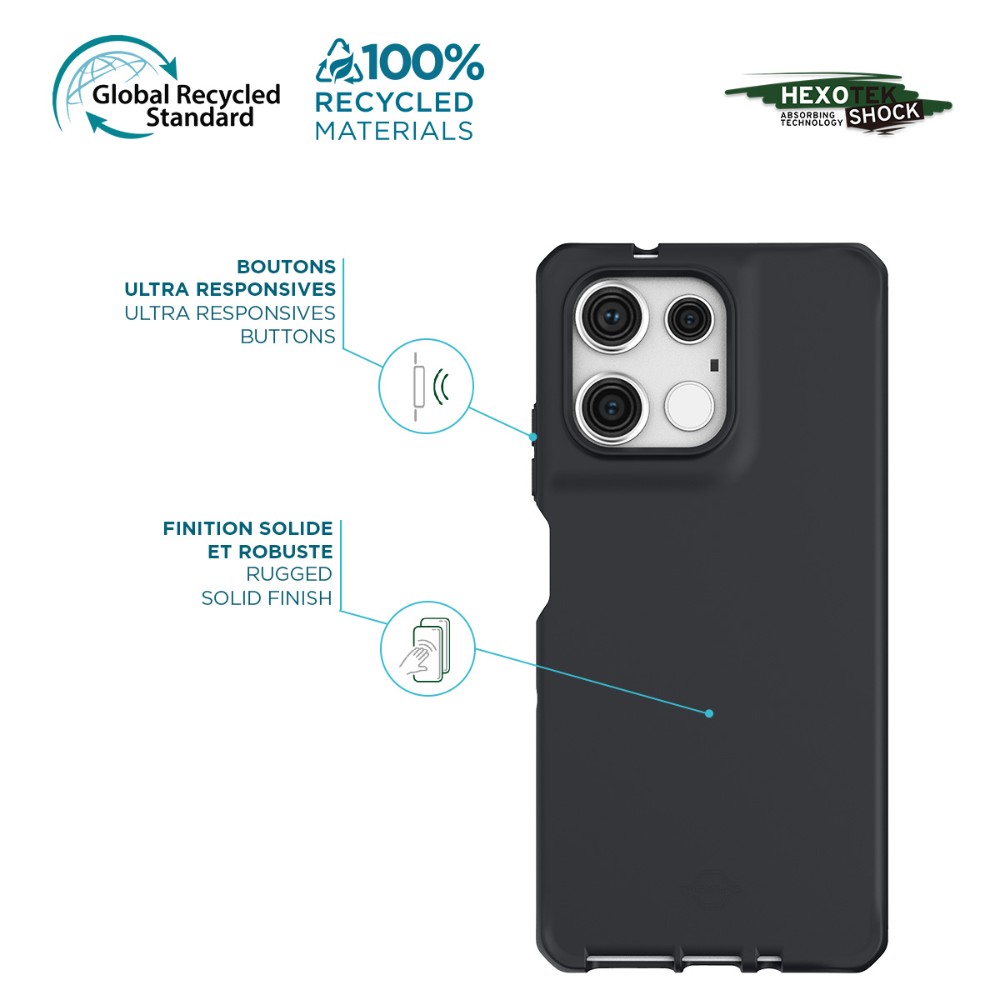 SPECTRUM_R protège efficacement votre Motorola avec une protection intelligente contre les chutes. L’impact est absorbé, dissipé et repoussé par la technologie de coussins d’air utilisée le long des côtés et des 4 coins de la coque SPECTRUM_R.SPECTRUM_R est connu comme la combinaison ultime : léger, résistant aux chutes, non marquant, essuyable et ultra fin.
