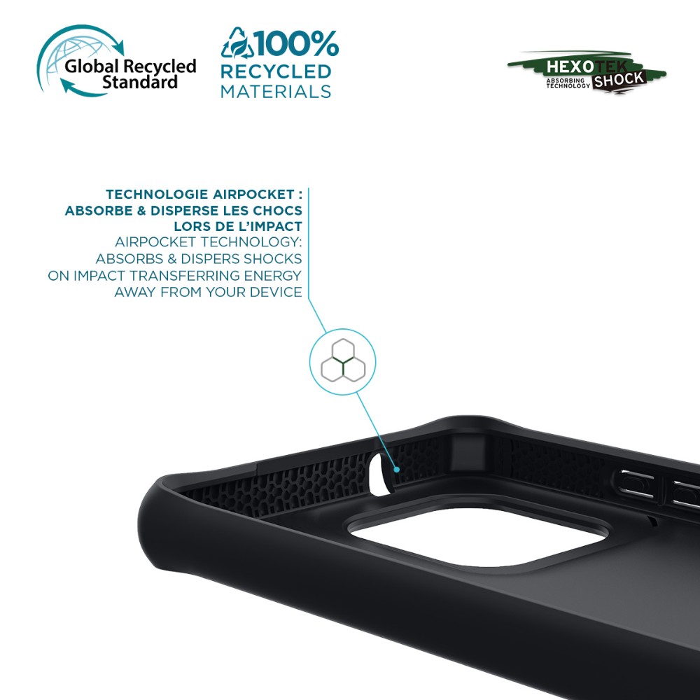 - TECHNOLOGIE AIRPOCKET Absorbe et disperse les chocs loin de l’appareil / du smartphone lors de l’impact