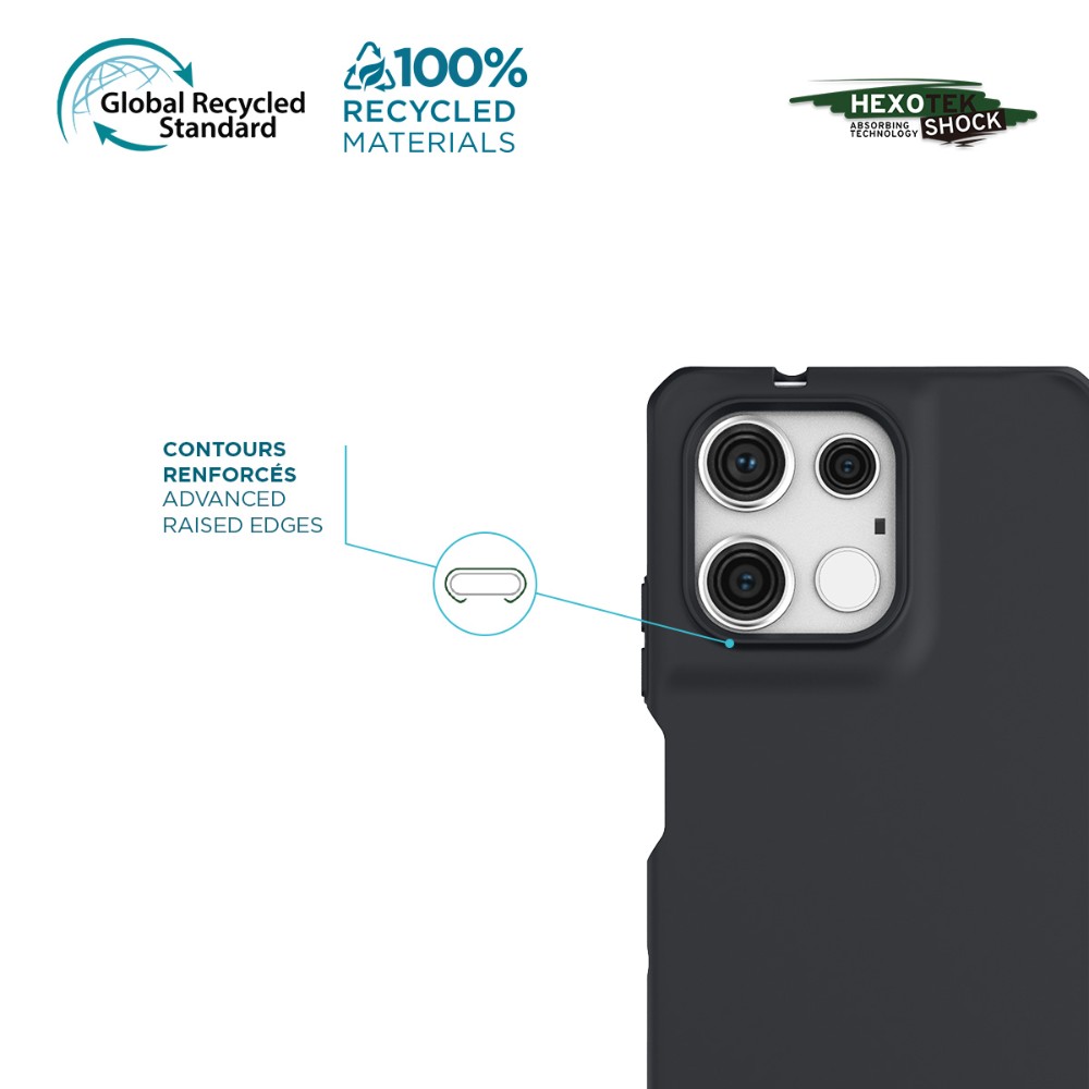 - ADVANCED RAISED EDGES Rebords protégeant votre appareil et l’objectif de votre appareil photo en cas de chutes à plat