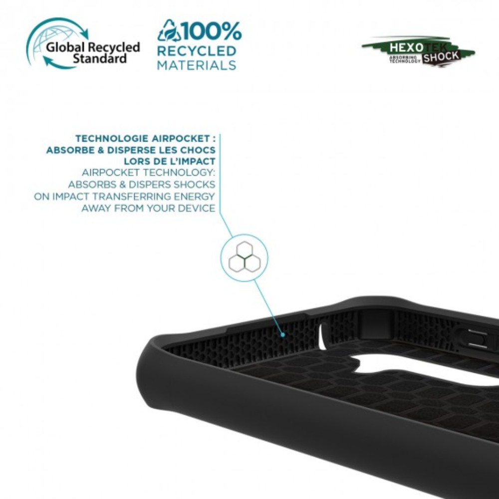 En résumé, cette solution de protection sans égal vous offre une double barrière de protection tout en gardant un design très fin, conçu à partir de 100% de matières recyclées certifiées GRS et 100% dédié à votre appareil !