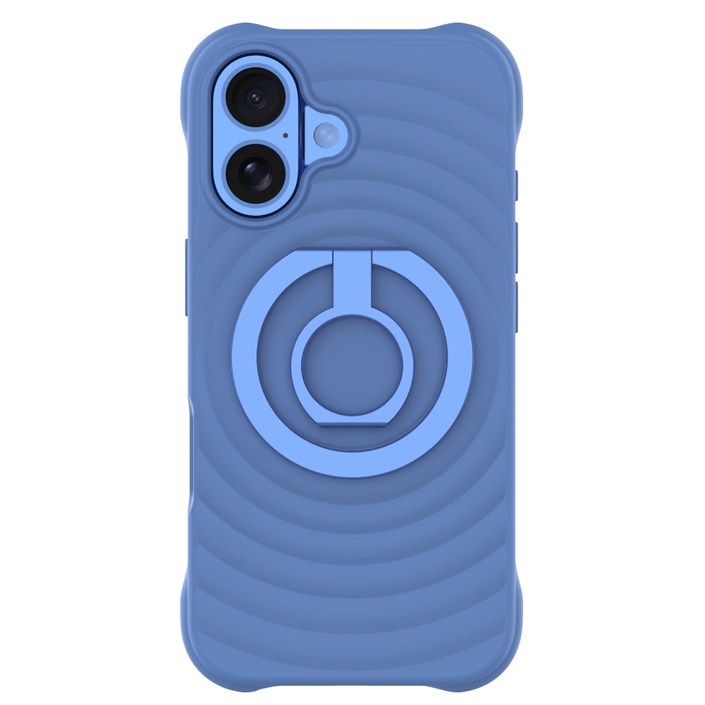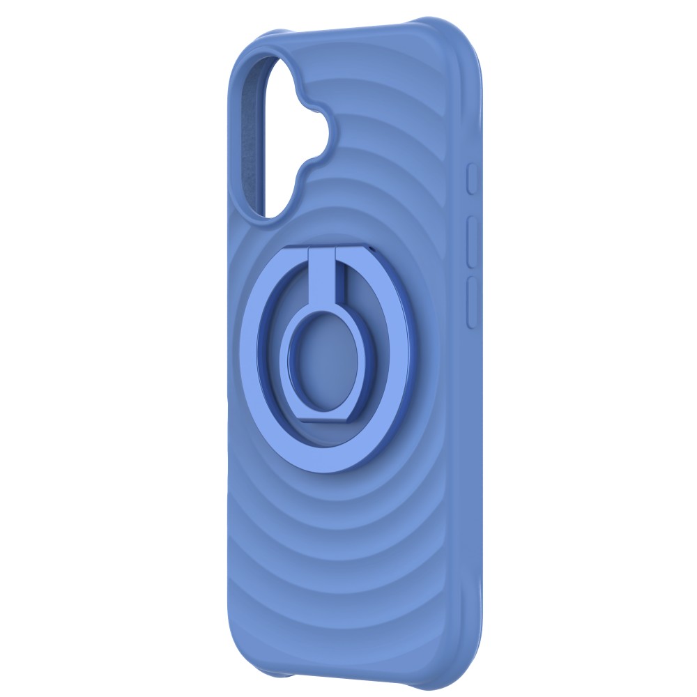TOUCH RIPPLE + SNAP pour iPhone 16 est une coque en silicone liquide avec surface gravée d’ondulations. Structure en PC recyclé, angles à coussins d’air. Anneau aimanté. MagSafe pour prendre des photos, se transforme en stand.