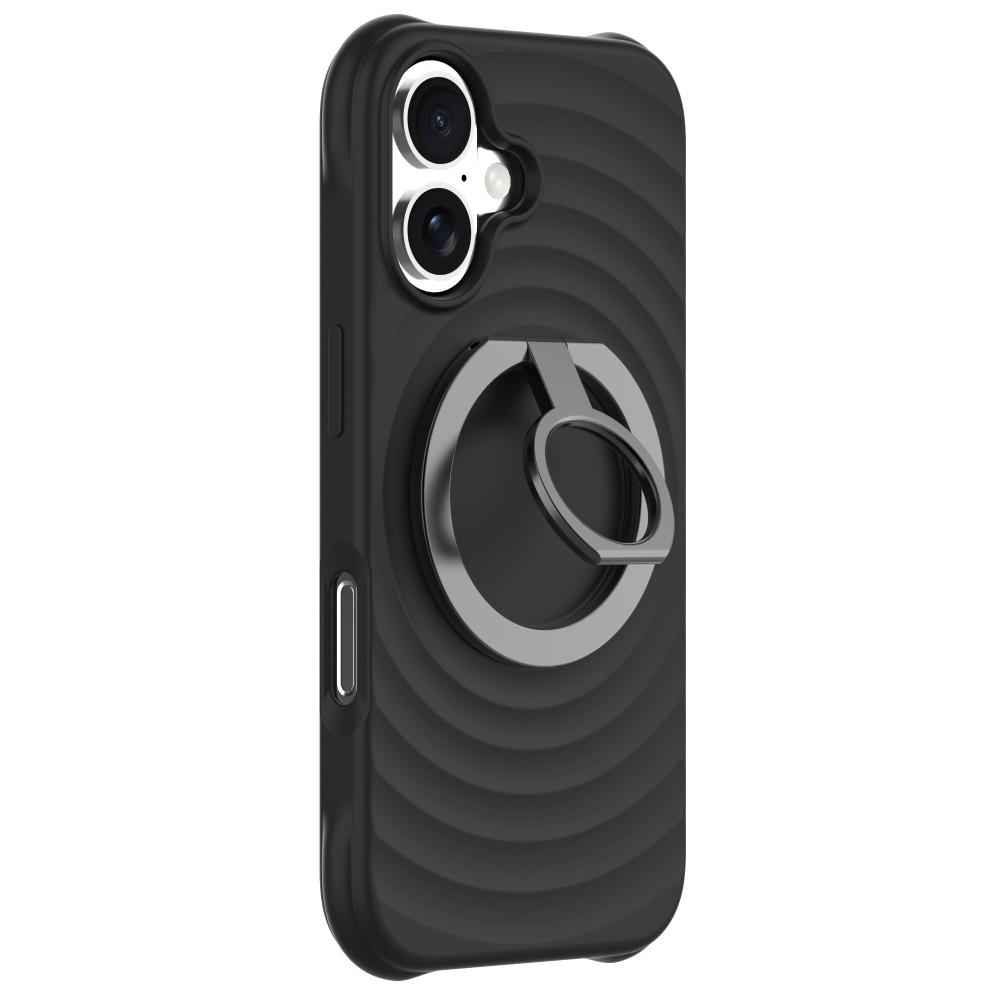TOUCH RIPPLE + SNAP pour iPhone 16 est une coque en silicone liquide avec surface gravée d’ondulations. Structure en PC recyclé, angles à coussins d’air. Anneau aimanté. MagSafe pour prendre des photos, se transforme en stand.