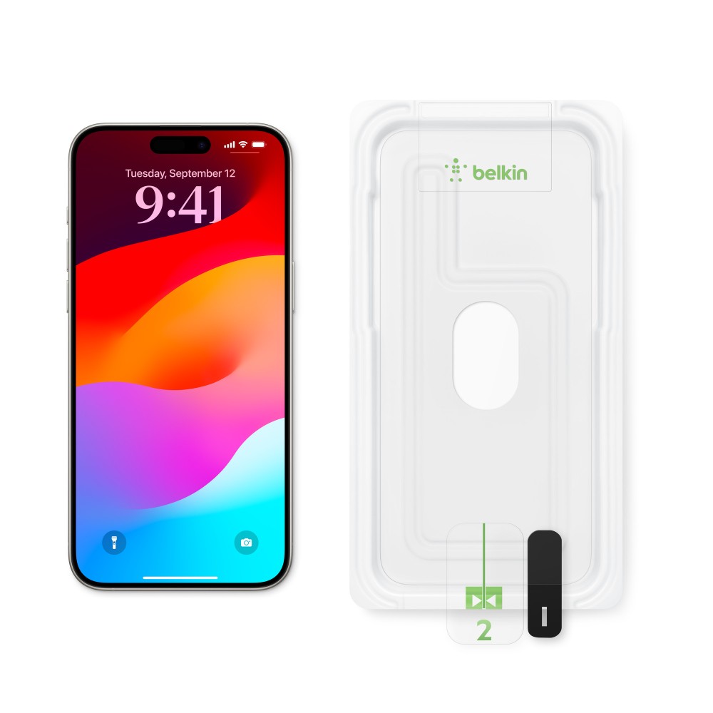 • Protection d’écran ScreenForce UltraGlass 2 avec traitement antimicrobien pour iPhone 15