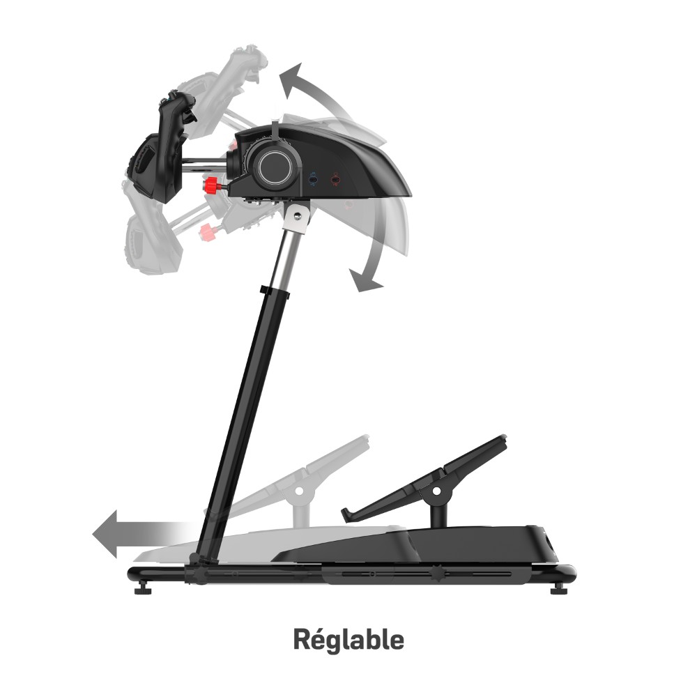 • Le loquet à dégagement rapide intégré vous permet de desserrer le manche principal pour régler la hauteur, l’angle et la longueur du Stand afin de l’adapter à votre taille et à votre environnement De plus, vous pouvez incliner à la fois la plateforme de montage supérieure pour un manche ou un volant, et la plateforme inférieure pour définir l’angle parfait afin d’installer des pédales de course ou des pédales de direction.